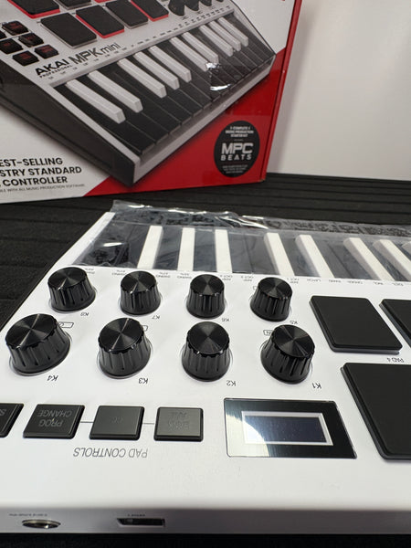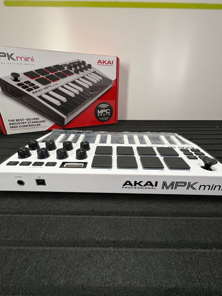Sehr gut erhaltene Akai Professional MPK Mini MK3 - 25-Tasten USB MIDI Keyboard Controller, 8 Drum Pads, 8 Regler aus einer Retour an.