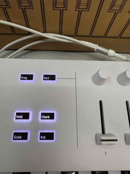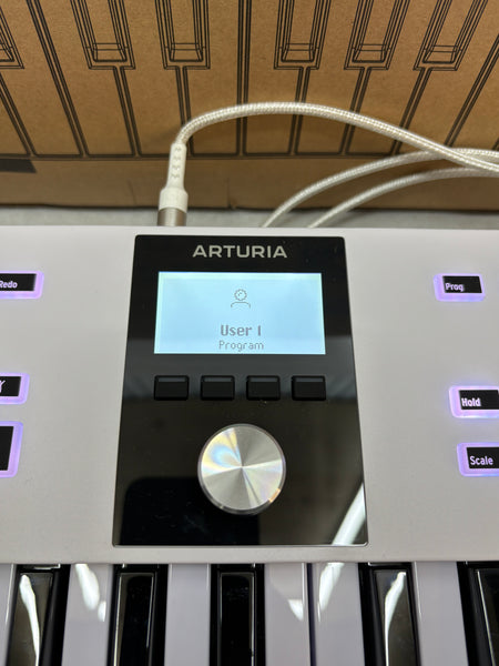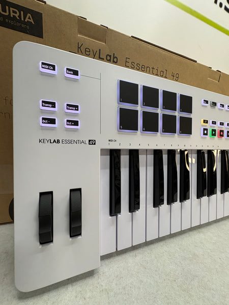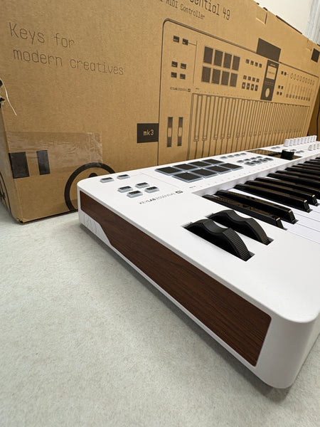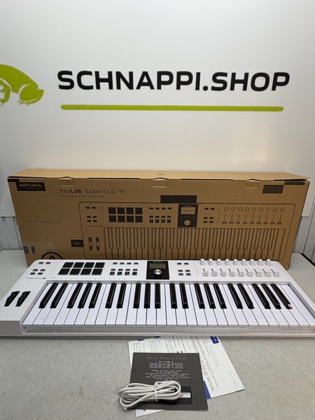 Biete einen voll funktionsfähigen Arturia Keylab Essential 49 - 49er MIDI-Contoller-Tastatur aus einer Retour an.