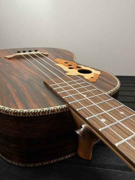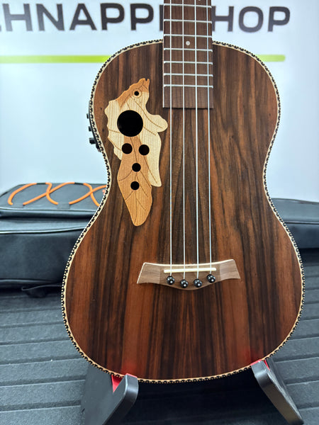 -Elektrische akustische Bariton-Ukulele verfügt über hochwertige Materialien wie Ebenholzkorpus, Griffbrett und Steg aus massivem Walnussholz.