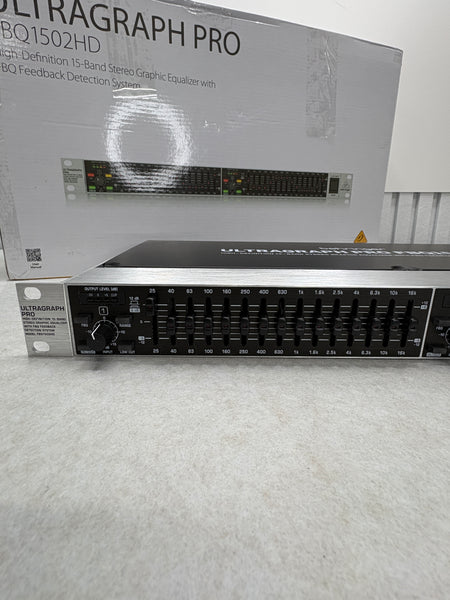 Biete einen voll funktionsfähigen Behringer FBQ1502HD Ultragraph Pro 2x 15 Band Graphic-EQ aus einer Retour an.