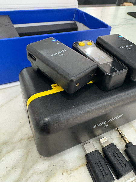 - Plug and Play: Das FULAIM X5M kabellose Lavalier-Mikrofonsystem wird mit drei Arten von Verbindungszubehör geliefert: iPhone-Adapter, TYPE-C-Adapter und 3,5-mm-Kamera-Audiokabel. Es ist weitgehend kompatibel mit iPhone, iPad, Samsung, Android-Telefonen, Kameras, Laptops, Tablets und Computern. Einfach anschließen und loslegen; die Geräte koppeln sich automatisch beim Einschalten. Es unterstützt Übertragungsreichweiten von bis zu 200m (656ft).