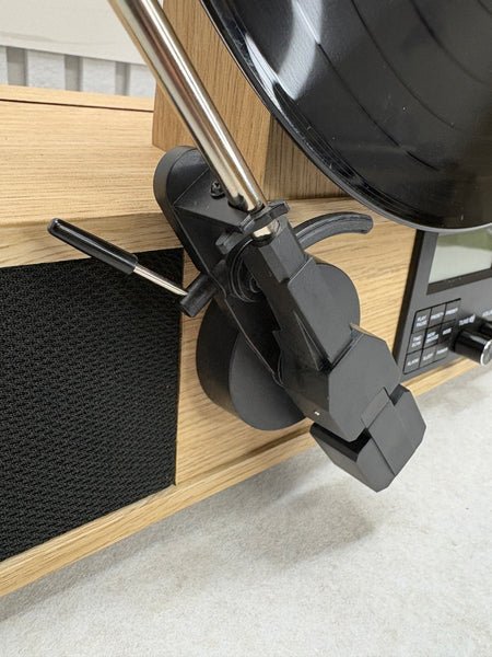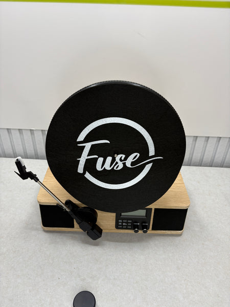Biete einen voll funktionsfähigen Fuse Vertikaler Plattenspieler moderner Vinyl-Player aus der Mitte des Jahrhunderts mit integrierten Lautsprechern und Bluetooth, FM-Radio aus einer Retour an.