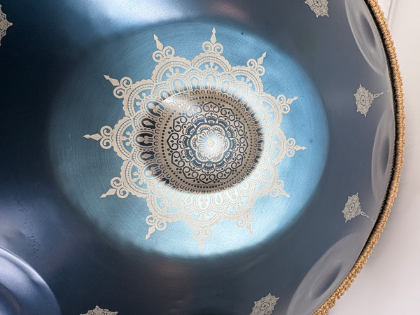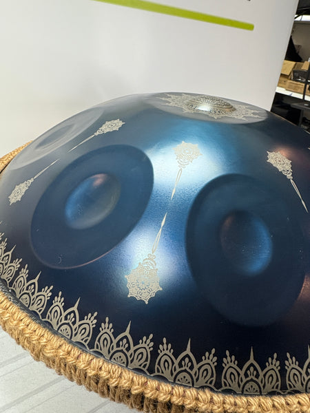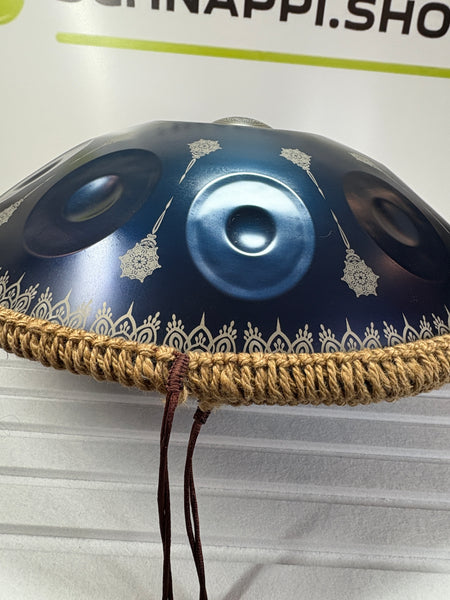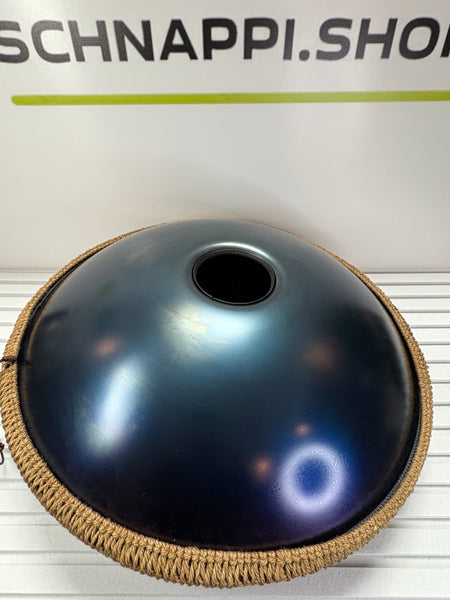 Das Paket enthält eine Handpan, eine Schutztasche, einen Hocker und Stöcke.