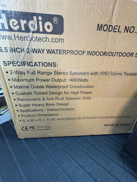 Sehr gut erhaltene Herdio 6,5 Zoll Outdoor Lautsprecher wasserdicht Passive 2-Wege 400W Wandlautsprecher mit kraftvollem Bass für Patio Home Indoor Poolside Deck Backyard (Paar, Schwarz) aus einer Retour an.