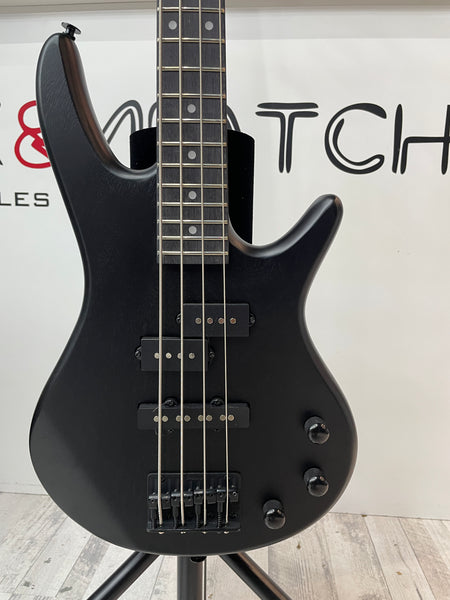 Sehr gut erhaltene Ibanez miKro GSRM20B-WK Weathered Black E-Bass aus einer Retour an.