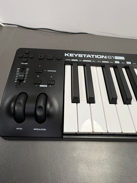 Biete einen voll funktionsfähigen M-Audio Keystation 61 MKIII - Kompakter 61-Tasten MIDI Keyboard Controller mit zuweisbaren Reglern, Pitch/Modulation Rädern, Plug-And-Play (Mac-Pc) Konnektivität und Software Production Suite aus einer Retoure an.