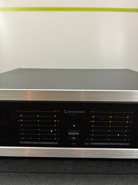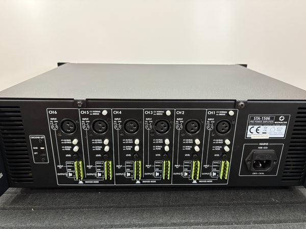 Sehr gut erhaltene MONACOR STA-1506 Mehrkanal-PA-Verstärker schwarz aus einer Retour an.