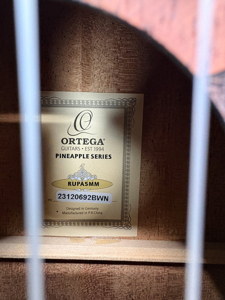 Sehr gut erhaltene Ortega Guitars Konzert Ukulele Akustisch Bonfire Series (RUPA5MM) aus einer Retour an.