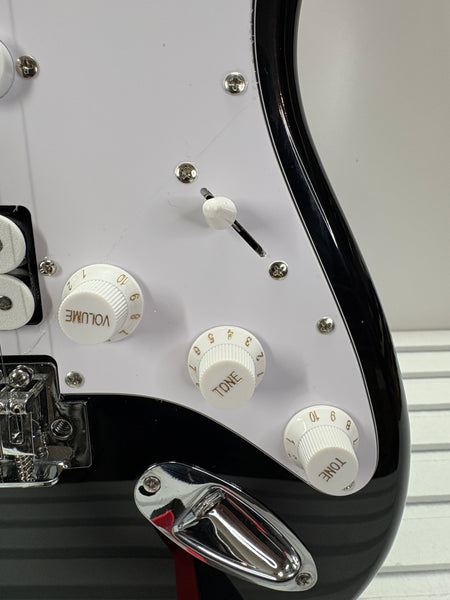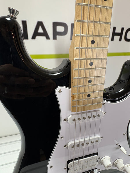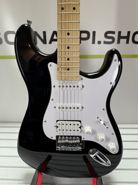 Biete einen voll funktionsfähigen Woodbrass ST100 E-Gitarre, Schwarz, vielseitige Gitarre, ideal für Anfänger, Korpus ST-Form, amerikanische Linde, Ahorngriffbrett, Rock-Stil, Pop, Funk, Country, Hardware, Metall aus einer Retour an.